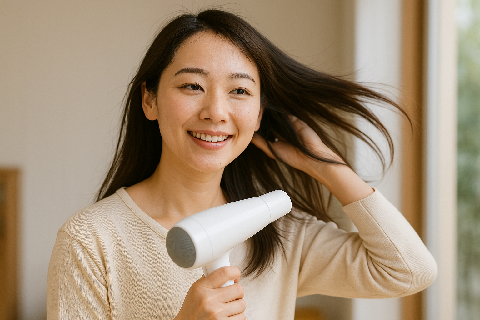 風がやさしいのに速乾で、ブロー後のまとまりがまるで別人です。